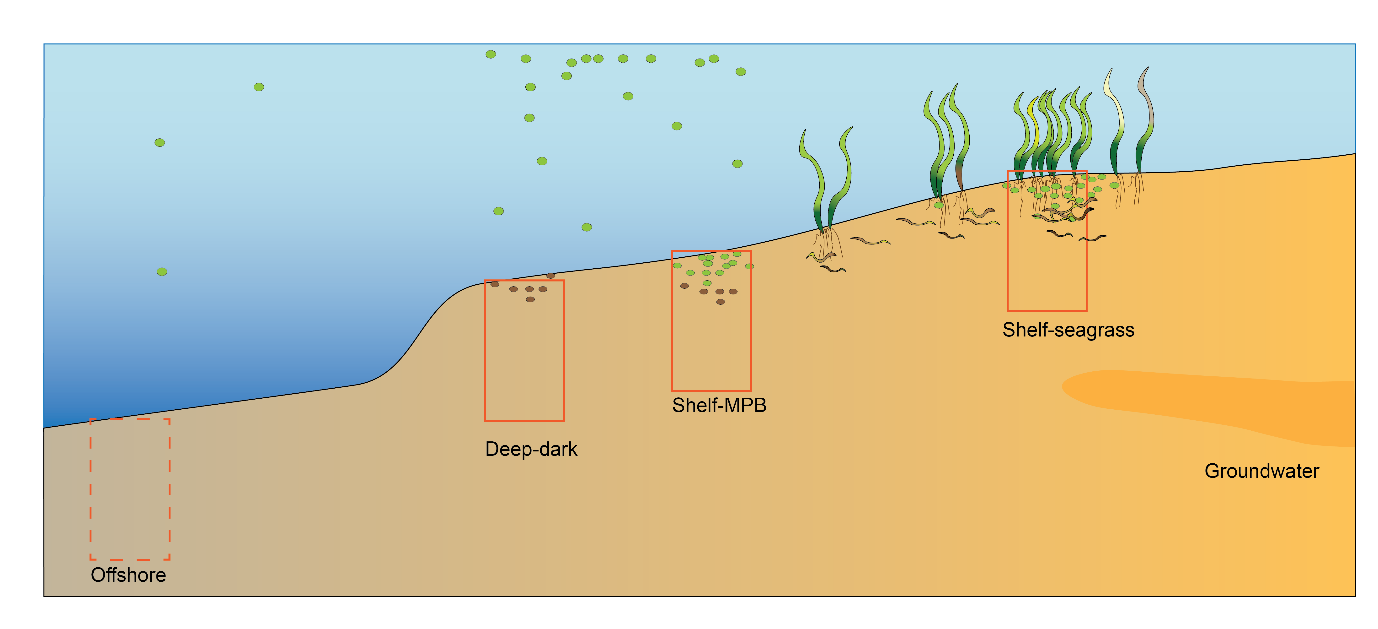 | Item | Offshore | Deepdark | Shelf-microalgae | Shelf-seagrass |