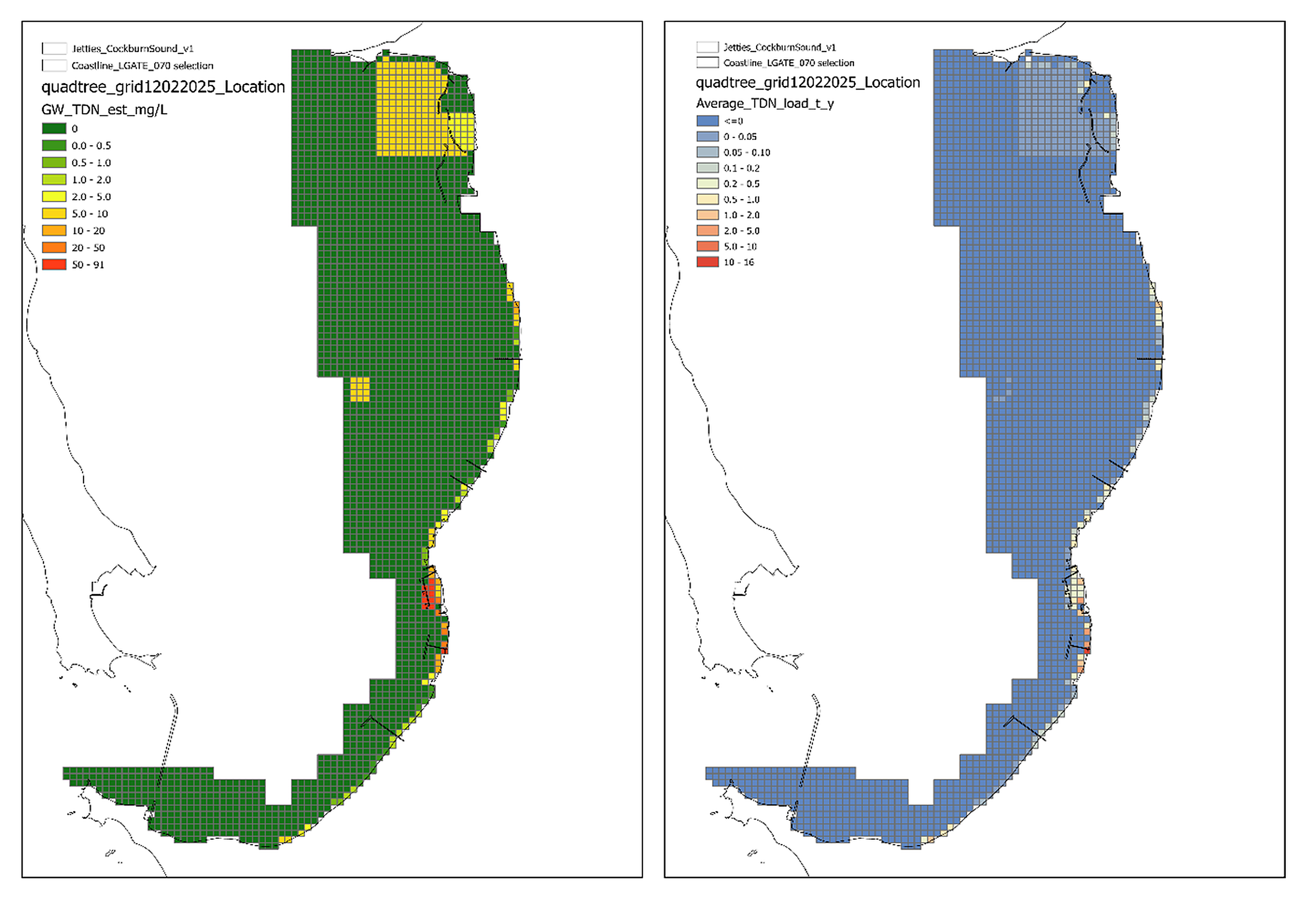 More recent modelling within the WAMSI-Westport Marine Science Program, has allowed a more contemporary estimate of flows and N loads, based on a combination of MODFLOW groundwater modelling and porewater nutrient sampling, as reported in Donn et al. (2025). These loads are considerably lower than prior estimates. Nonetheless, the loads can make a significant contribution to the nutrient budget in the Sound, and are integrated within the CSIEM workflows.
